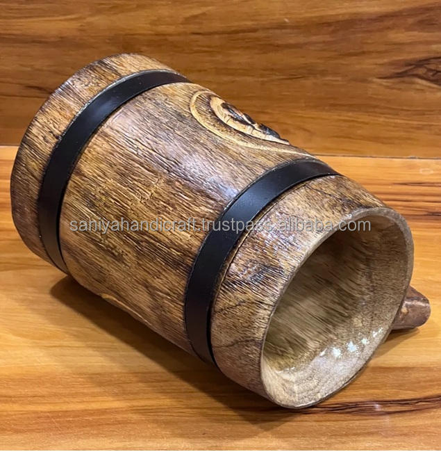Wholesale Customized Solid Acacia Wooden Mug Eco-Friendly Beer Tea Coffee Drinking Horn with Polished Handle Natural Anti-Scald
