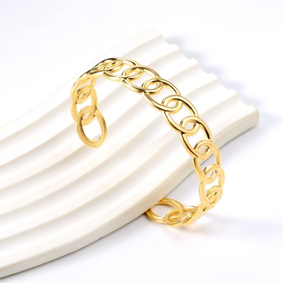 กำไลข้อมือสแตนเลสชุบทอง 18K แบบกลวงขัดเงา สไตล์อิตาลี สำหรับผู้หญิง รับผลิตตามสั่งขายส่ง