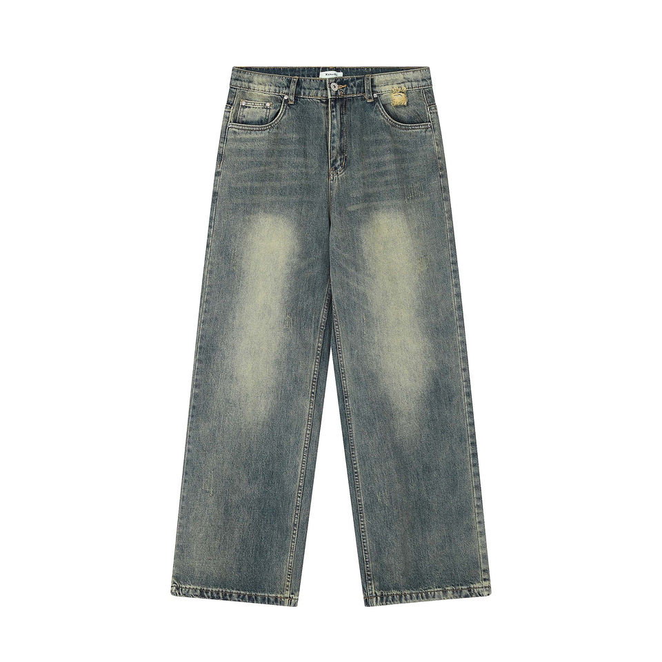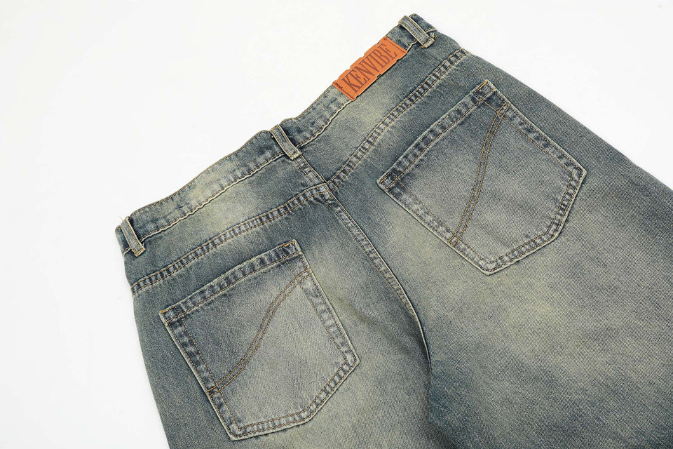 กางเกงยีนส์เดนิมทรงหลวมสไตล์สตรีทแวร์เอวกลางคุณภาพสูงแบบซันเฟดสั่งทำขายส่งสำหรับผู้ชาย ดีไซน์เท่ห์ทันสมัย