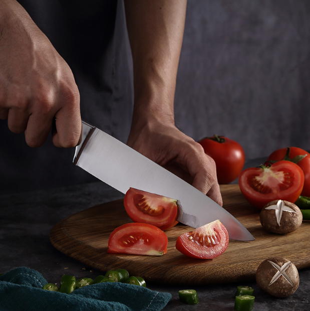 มีดทำครัวมืออาชีพมีดสแตนเลสพร้อมที่จับไม้