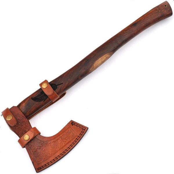 ขวานดามัสกัสสำลองทำด้วยมือพร้อมใบมีดแกะสลักด้ามจับไม้