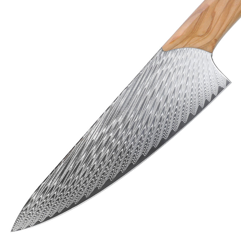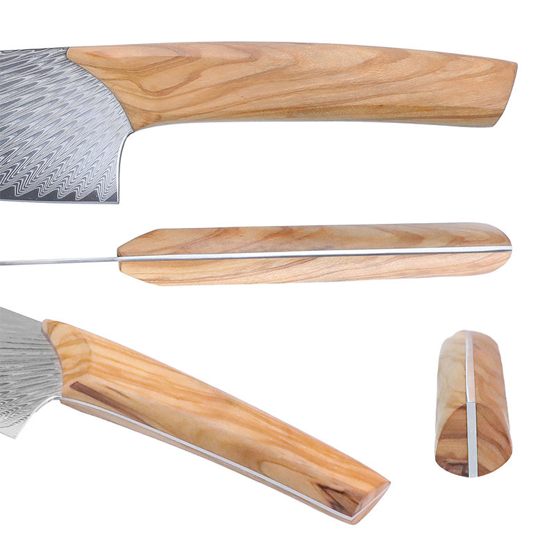 มีดเชฟในครัวดามัสกัสปลอมทำจากไม้มะกอกบริการ OEM ออกแบบได้ตามที่ต้องการ