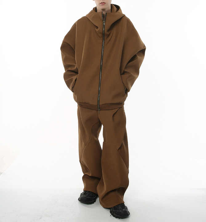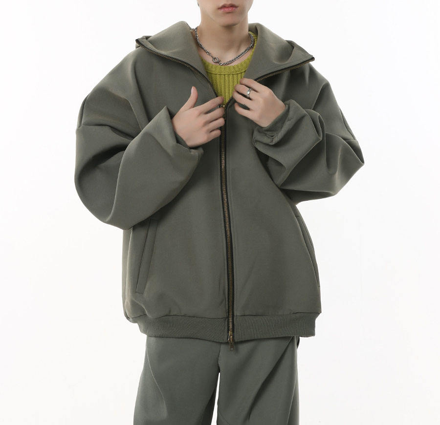 ชุดเสื้อคาร์ดิแกนซิปคู่สไตล์วินเทจไฮสตรีทชุดเสื้อฮู้ดแฟชั่นมีเอกลักษณ์