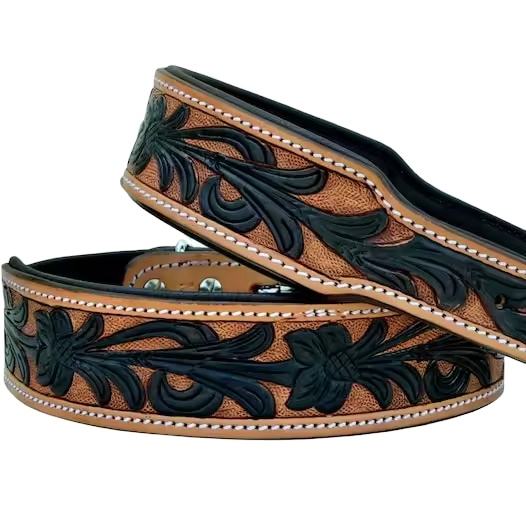 สายจูงสุนัขหนังแท้ลายดอกไม้แบบโค้งสำหรับสัตว์เลี้ยงสไตล์ตะวันตกออกแบบได้ตามต้องการ