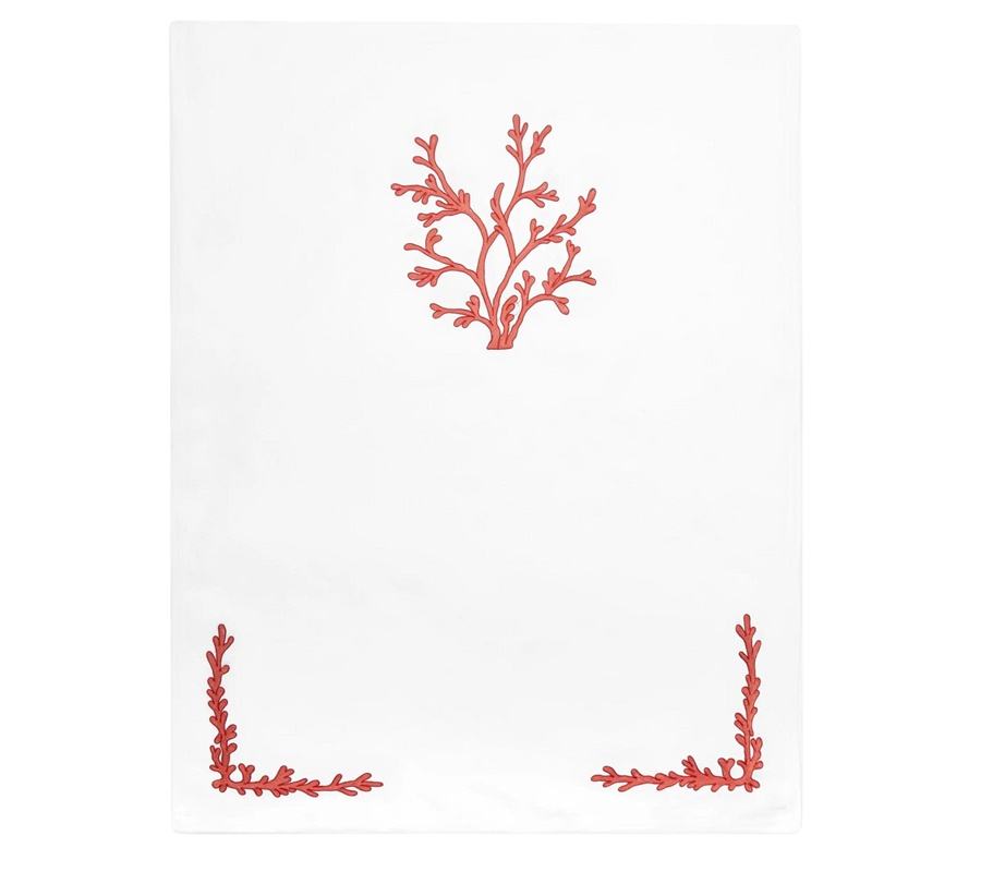 ผ้าปูโต๊ะลินินสีขาวสั่งทำขายส่ง คุณภาพสูง ลายปักปะการังสีแดง สำหรับใช้ในบ้าน โรงแรม และงานเลี้ยง