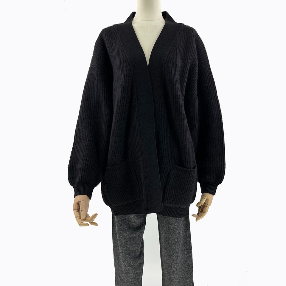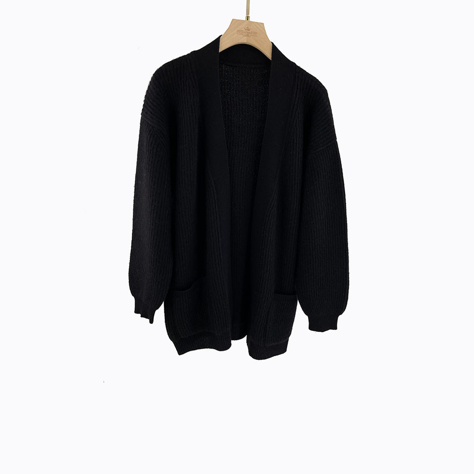 เสื้อสเวตเตอร์ถักแขนยาวกระดุมแถวเดียวสำหรับผู้หญิง