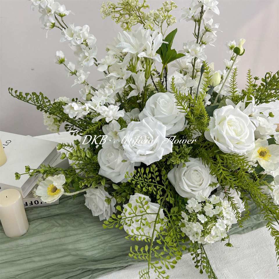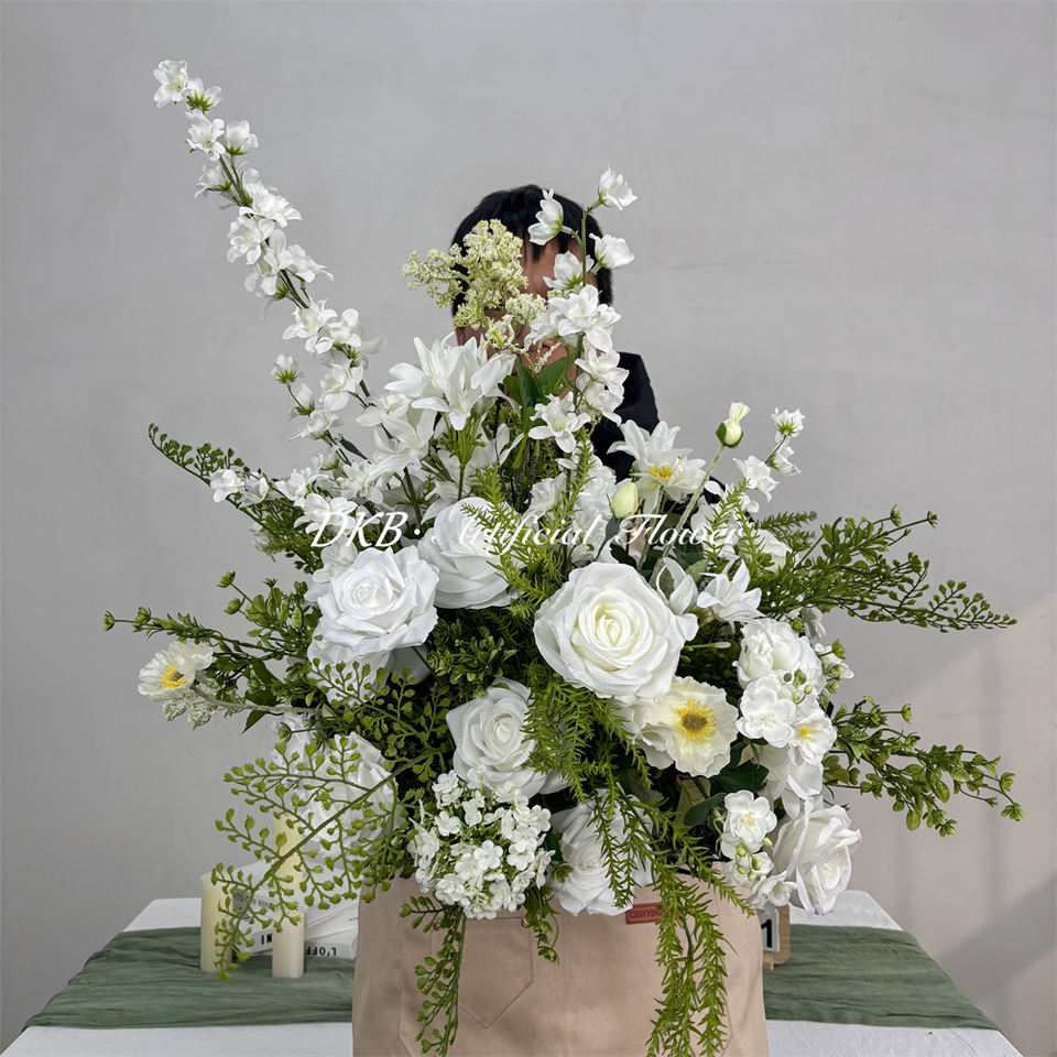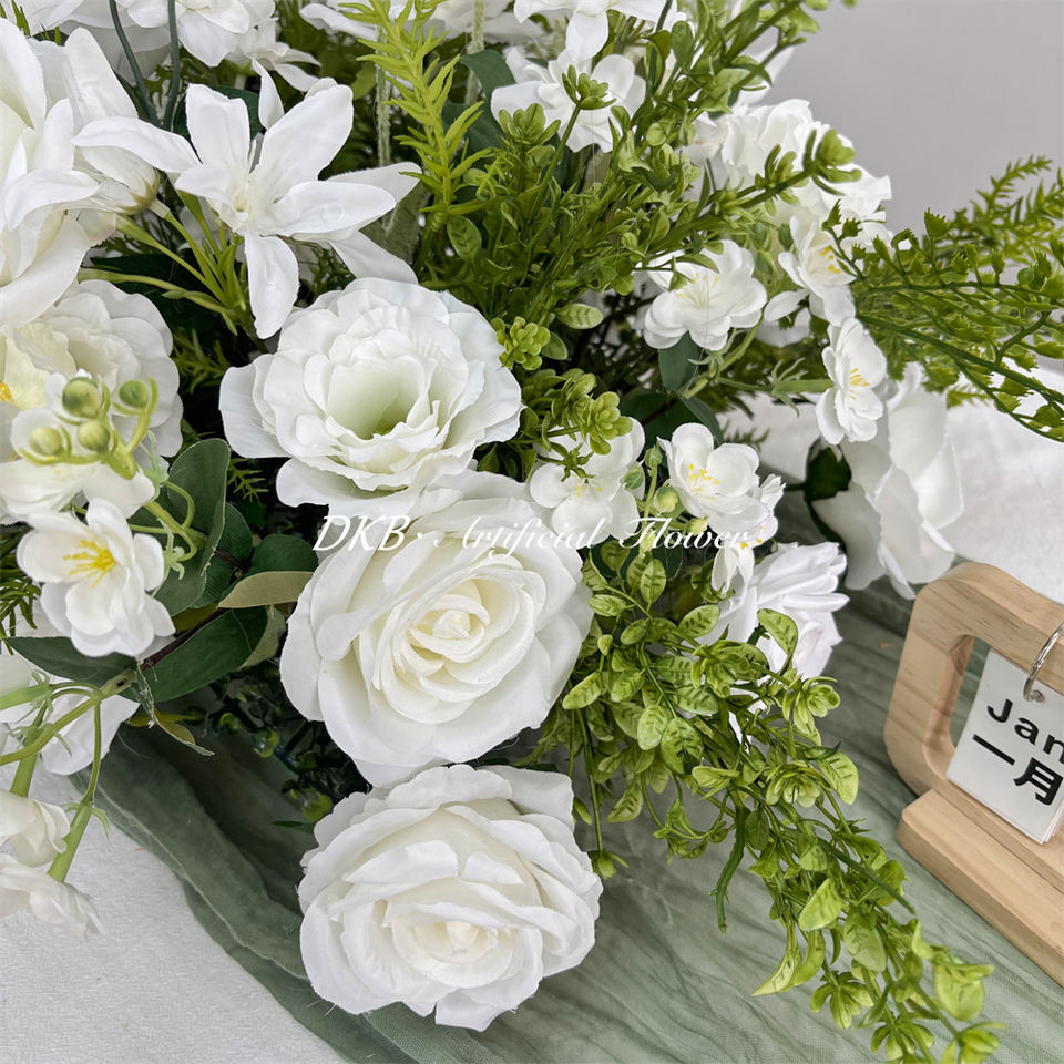 ดอกไม้ประดิษฐ์ทำมือจากผ้าไหมสีขาวทรงกลมสำหรับตกแต่งร้านอาหาร วันแม่ วันคริสต์มาส ขายส่งแบบกำหนดเองได้