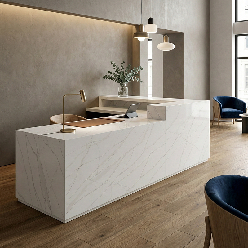 ขายส่งแผ่นควอตซ์ขนาดใหญ่พิเศษ 3200x1600 ลาย Calacatta Laza สำหรับเคาน์เตอร์ครัวในบ้าน อพาร์ทเมนท์ โรงแรม และแผนกต้อนรับ