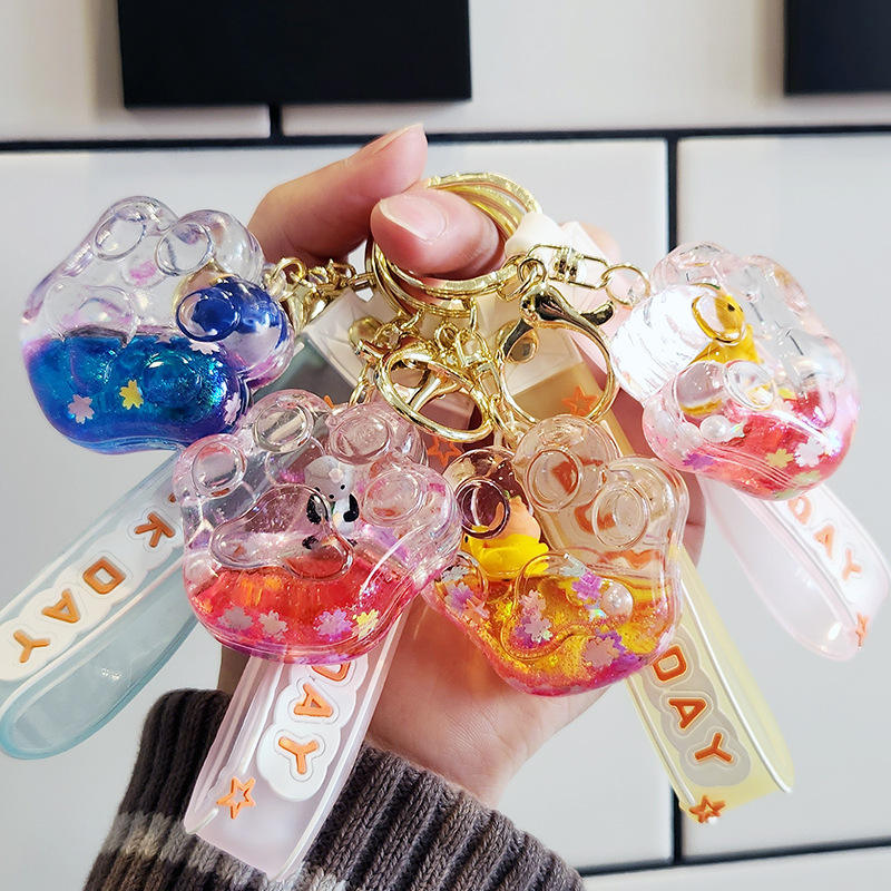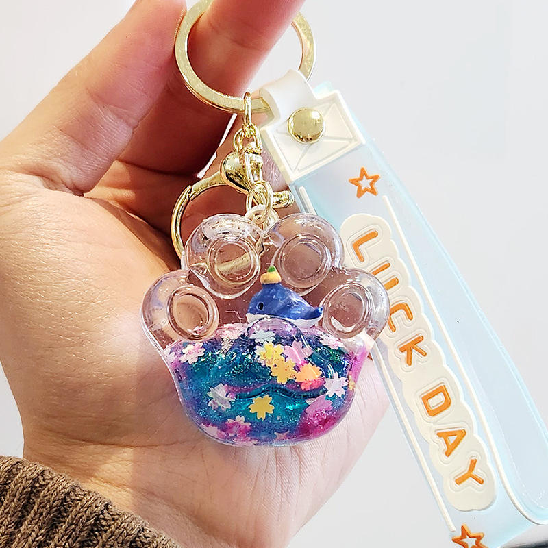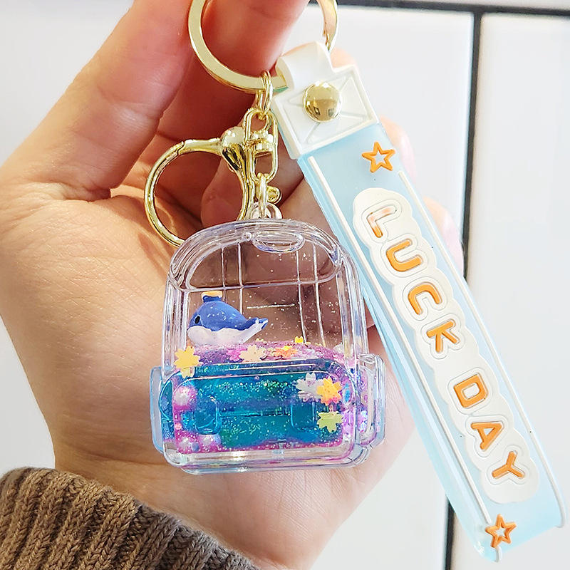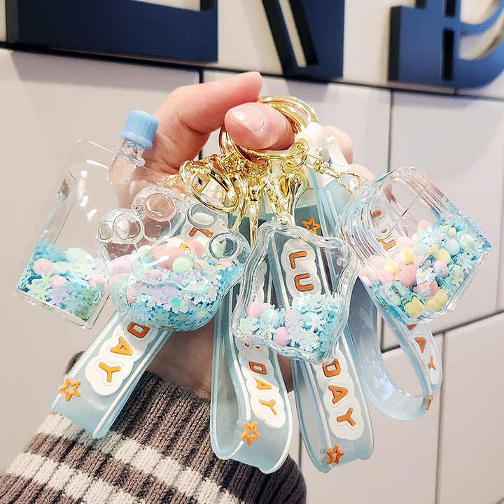 ขวดน้ำทรายลอยน้ำได้รูปตัวการ์ตูนของเล่นรูปการ์ตูนตุ๊กตาหมีชานมไข่มุกพร้อมจี้รูปกุญแจรถ