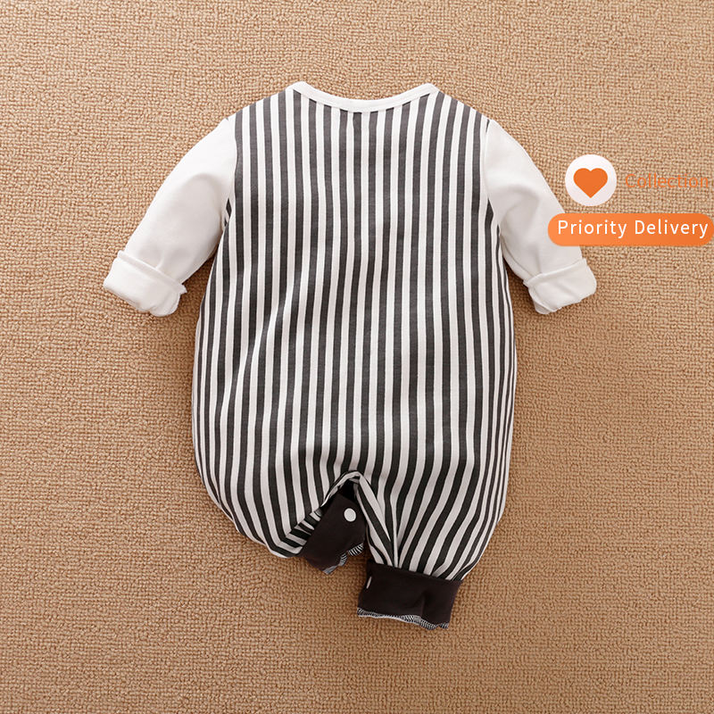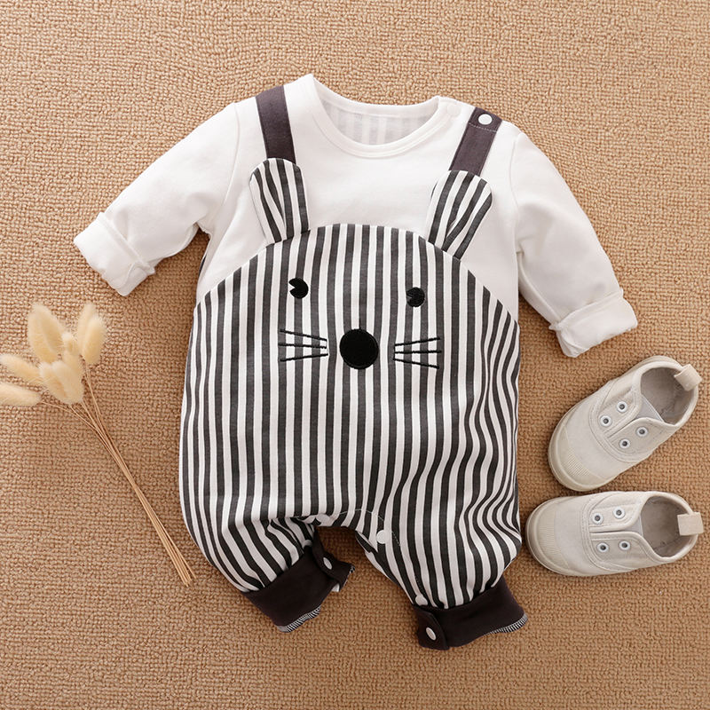 ชุดรอมเปอร์เด็กน่ารักลายสัตว์ ผ้าฝ้ายลายทาง สำหรับเด็กผู้ชายและเด็กผู้หญิง ฤดูใบไม้ร่วง ฤดูหนาว