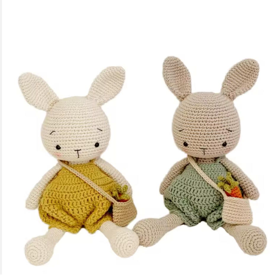 ตุ๊กตากระต่ายน่ารักแบบแฮนด์เมดของเล่นผ้าคอตตอนถักโครเชต์ผ้านุ่มพร้อมไส้หมี PP