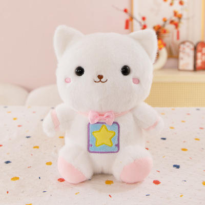 ตุ๊กตาแมวน่ารักสีขาว โบว์สีชมพู ดาวสีเหลือง ขนาด 8 นิ้ว ของเล่นนุ่มนิ่ม สำหรับเครื่องคีบตุ๊กตาในเกมอาร์เคด ขายส่ง
