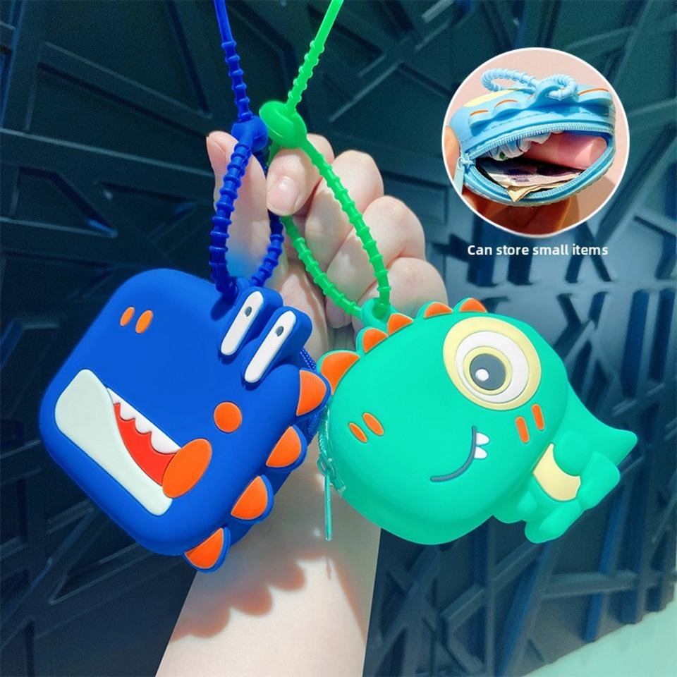 กระเป๋าใส่เหรียญซิลิโคนรูปไดโนเสาร์น่ารักแบบขายส่ง กระเป๋าใส่หูฟังแบบเรียบง่าย กระเป๋าเก็บของขนาดเล็กสำหรับเด็ก ลายการ์ตูน ของขวัญแปลกใหม่