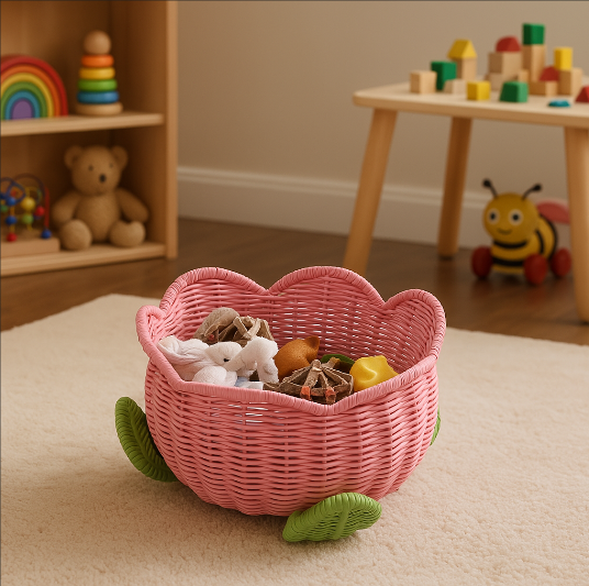 ตะกร้าหวายลายดอกไม้สีชมพูน่ารักสินค้าผลิตจากเวียดนาม
