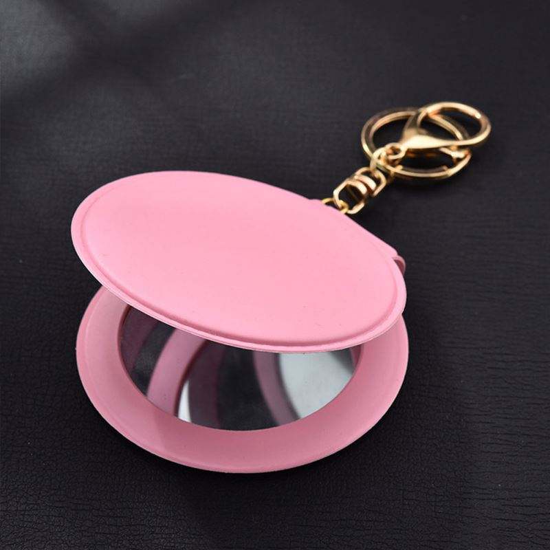 พวงกุญแจกระจกขนาดเล็กพับได้แบบพกพาขนาดเล็กทำจากหนัง PU น่ารักกระจกทรงกลมสองด้าน