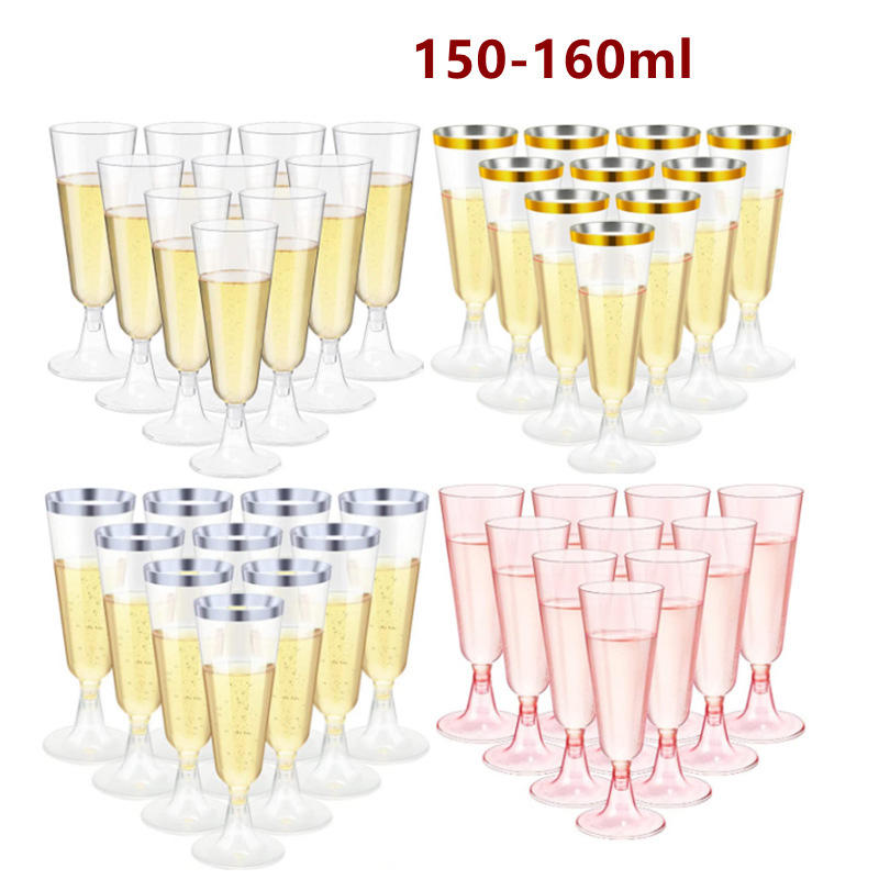 แก้วแชมเปญพลาสติกแบบใช้แล้วทิ้ง รุ่น DD1093 ขอบสีทอง ขนาด 5 ออนซ์ ประดับกลิตเตอร์ สำหรับงานแต่งงานและวันขอบคุณพระเจ้า ขายส่ง