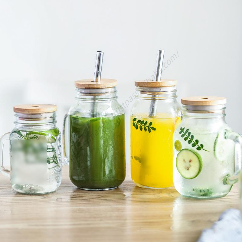 Wholesale DD1812 Iced Coffee Smoothie 16oz Drinking Tumbler Oats Glass Mugs with Straws and Lids Mason Jars Handle