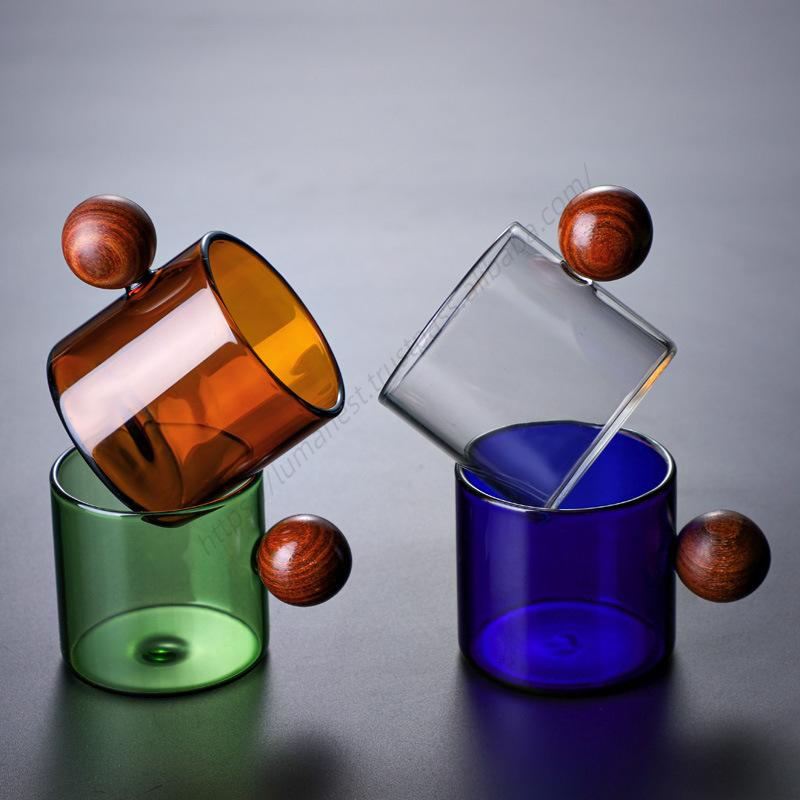 แก้วน้ำใสหลากสี DD1931 พร้อมหูจับไม้ แก้วกาแฟ แก้วลาเต้ ขายส่ง