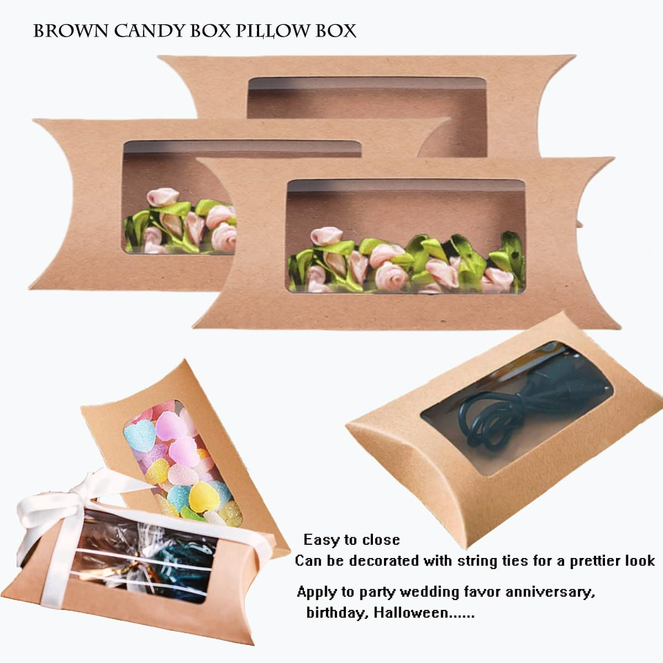 กล่องกระดาษคราฟท์หมอนสำหรับบรรจุภัณฑ์ของขวัญลูกกวาดสีน้ำตาลออกแบบชื่อแบรนด์ตามสั่ง