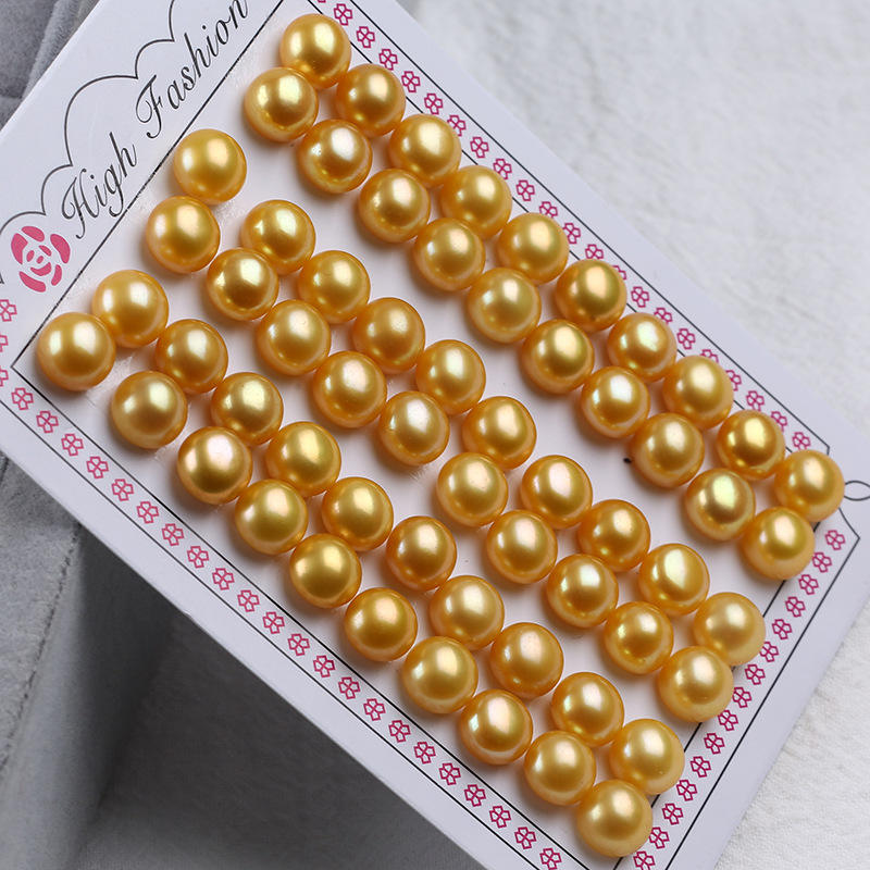 ลูกปัดไข่มุกน้ำจืดแบบขายส่งสำหรับงาน DIY ไข่มุกทรงขนมปังแบบมีรูครึ่งวงกลมสีทอง ไข่มุกเปลือยสำหรับงานออกแบบสร้างสรรค์