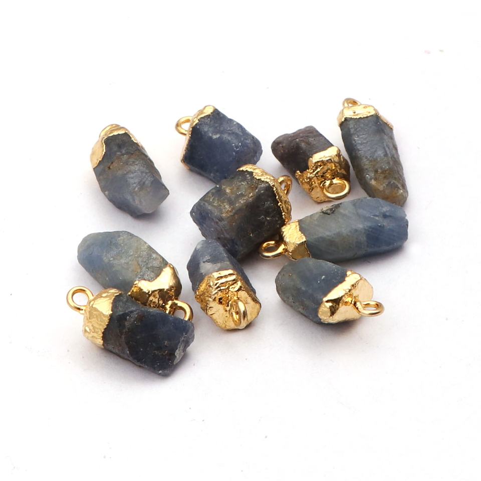 จี้หินไคยาไนต์สีน้ำเงินธรรมชาติสำหรับทำเครื่องประดับ DIY ขายส่ง ตัวเชื่อมทองเหลืองชุบทอง อุปกรณ์ทำอัญมณี ขนาด 20-30 มม.