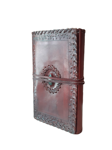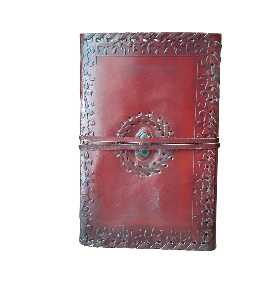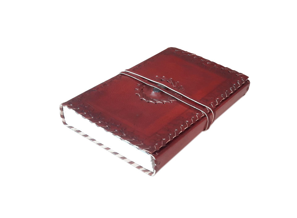สมุดโน้ตปกหนังแท้ลายปั๊มสีแดงแบบมีแถบปิด งานแฮนด์เมด ออกแบบได้ตามต้องการ จำนวน 200/100 หน้า ขายส่งโดยกลุ่ม DNA