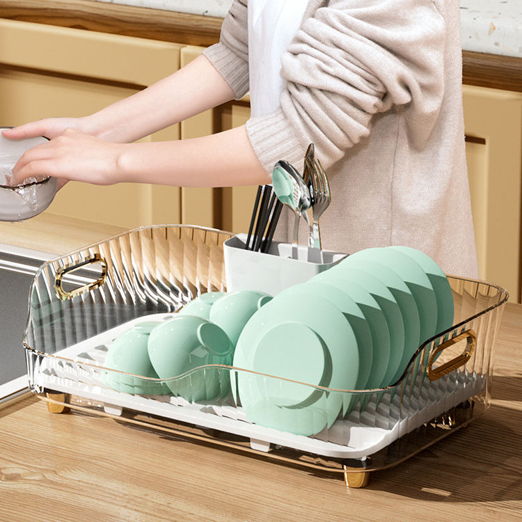 ที่คว่ำจานแบบขายส่ง รุ่น DS2118 พร้อมที่วางแก้วและช้อนส้อม สำหรับวางบนเคาน์เตอร์ครัว ชุดชั้นวางและถาดรองน้ำ