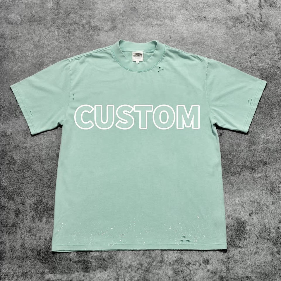 Wholesale DTG Printed Men's Custom T-Shirt 100% Cotton Acid Washed Black Band Printing Short Sleeves Long Oversized Knitted