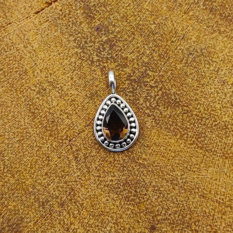 จี้ไฟสีเงินแบบฝังเหลี่ยมเพชรพลอยควอตซ์สโมควอทซ์ธรรมชาติสำหรับเป็นของขวัญสำหรับเด็กฝังหนามเตย