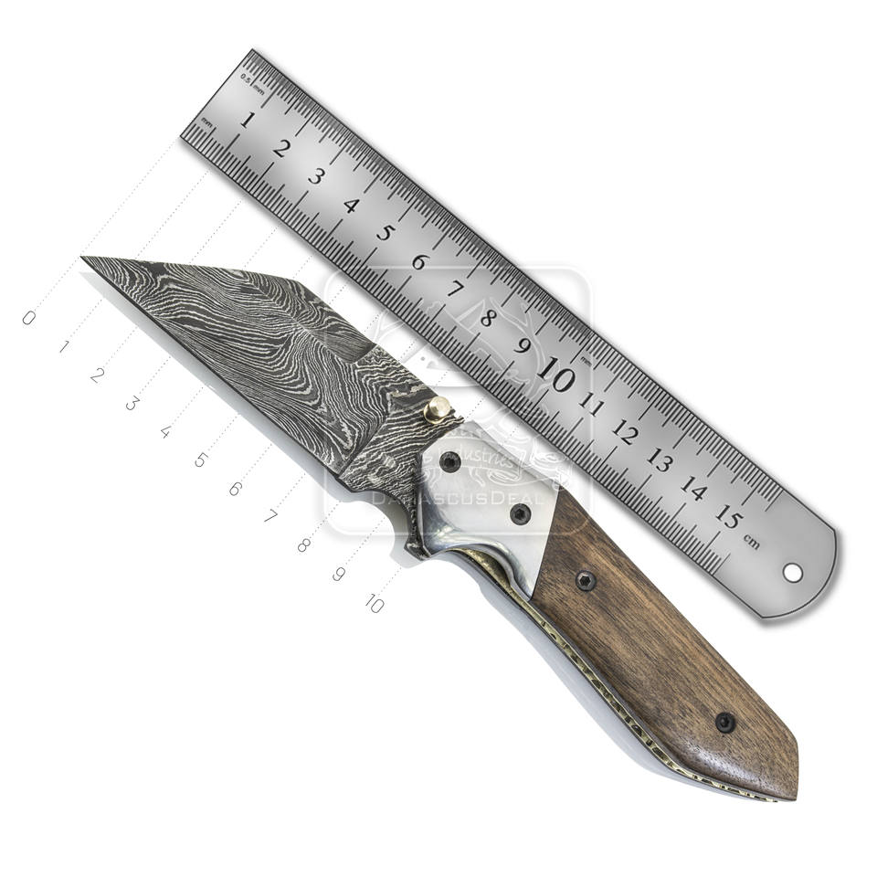 มีดพกพับเหล็กดามัสกัสสำหรับ DD-FK-803ไม้วอลนัทใบมีดสแตนเลสใช้กลางแจ้งแบบยุทธวิธีในการตั้งแคมป์