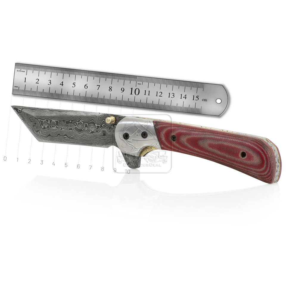 วัสดุที่จับ:Micarta สีแดงและสีขาวพร้อมหมอนข้างสแตนเลส