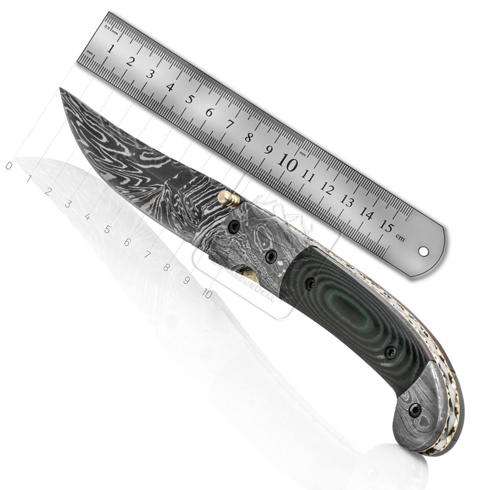 Handle Material:Black and Green Micarta with Damascus Steel Bolsters