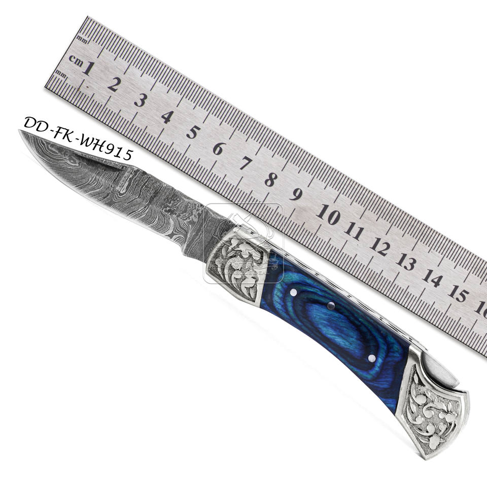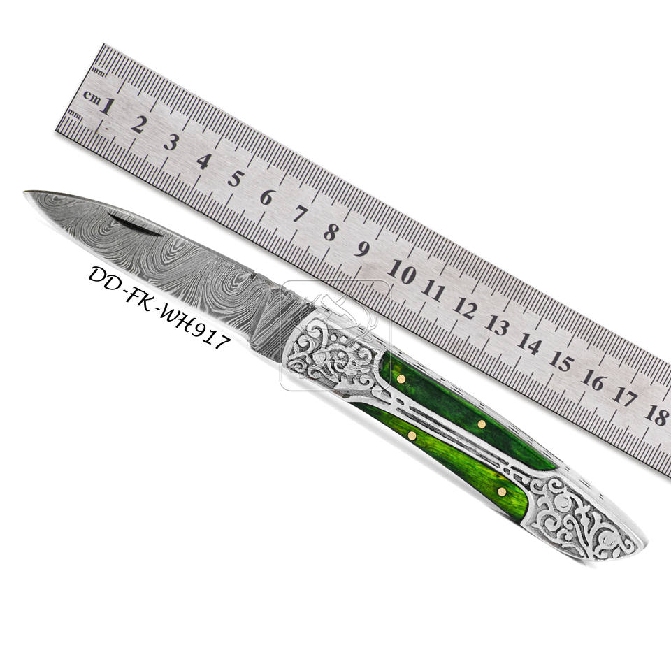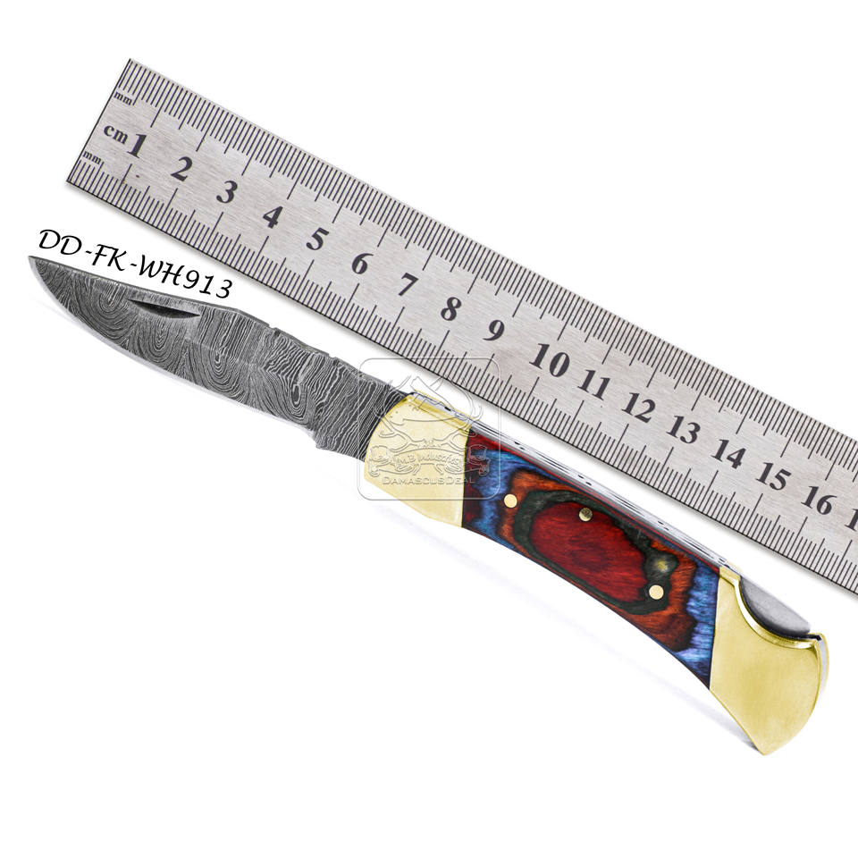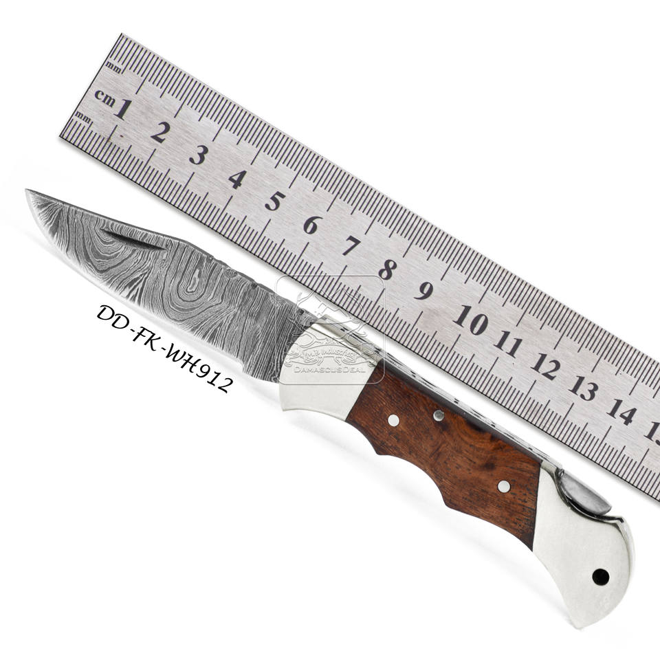 มีดพกเหล็กดามัสกัสทำด้วยมือและ DD-FK-WH912ใบมีดคมคุณภาพสูงพร้อมที่จับไม้แปลกใหม่สำหรับกลางแจ้ง