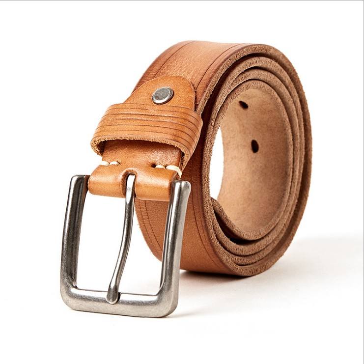 เข็มขัดหนังวัวแท้สีน้ำตาลเข้มสำหรับผู้ชาย ดีไซน์เนอร์ หัวเข็มขัดเหล็ก ระบายอากาศ กันน้ำ สไตล์ลำลองธุรกิจ รับสกรีนโลโก้