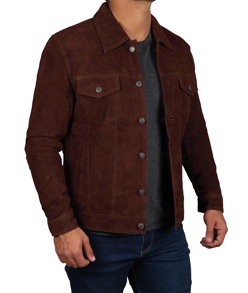แจ็กเก็ตหนังนิ่มของผู้ชายทรูคเกอร์สีน้ำตาลเข้ม