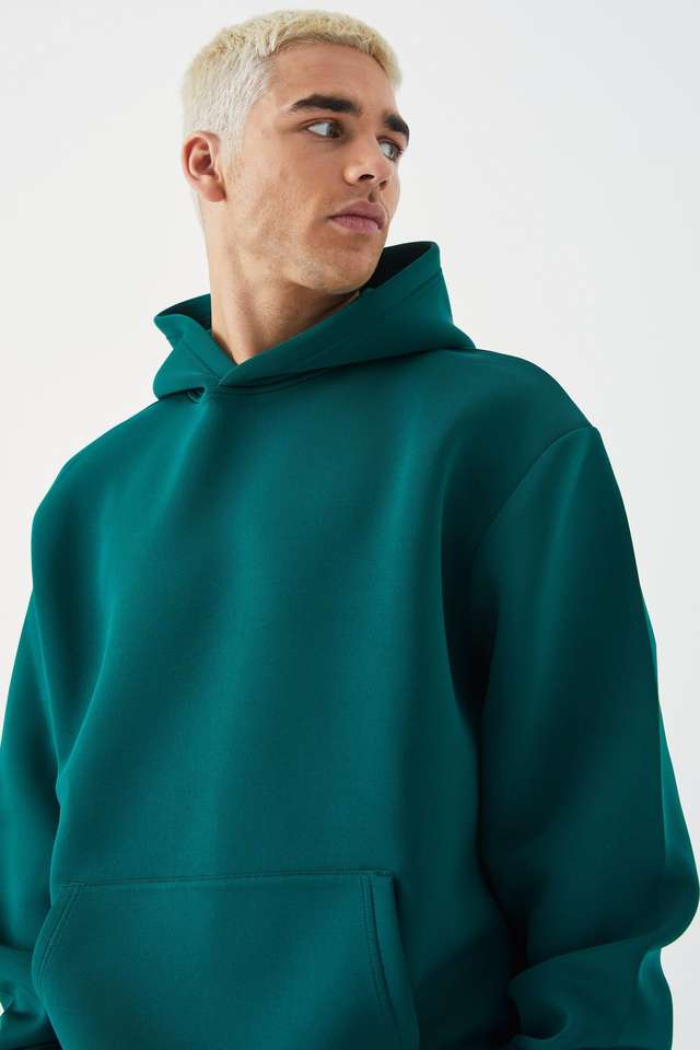 เสื้อมีฮู้ดผ้าฟลีซผ้าฝ้าย100% สีเขียวเข้มมีฮู้ดทรงบ็อกซี่มีฮู้ดระบายอากาศได้ดี