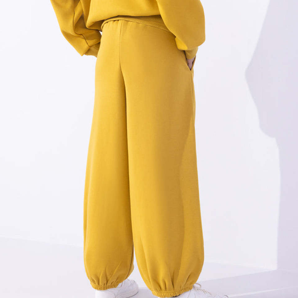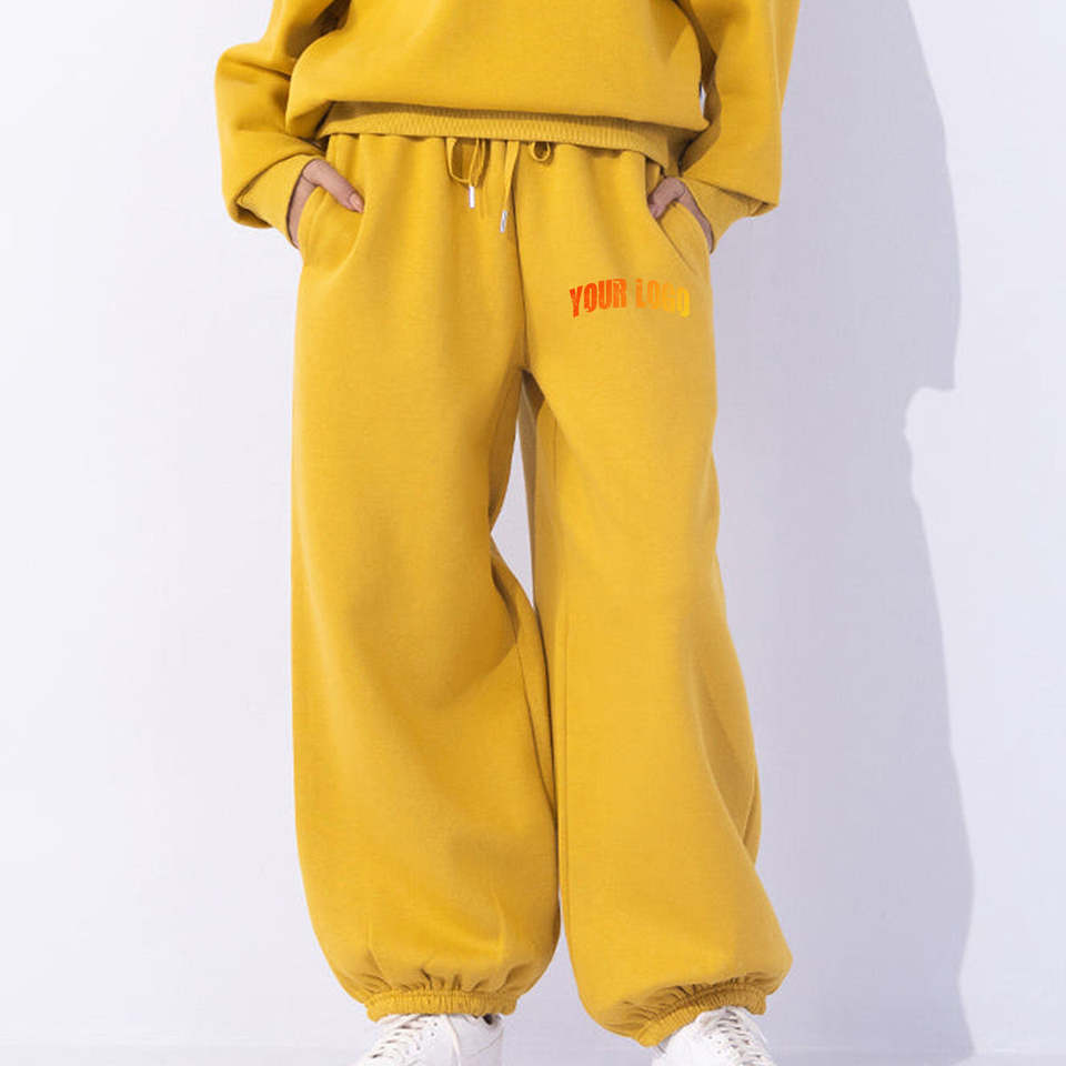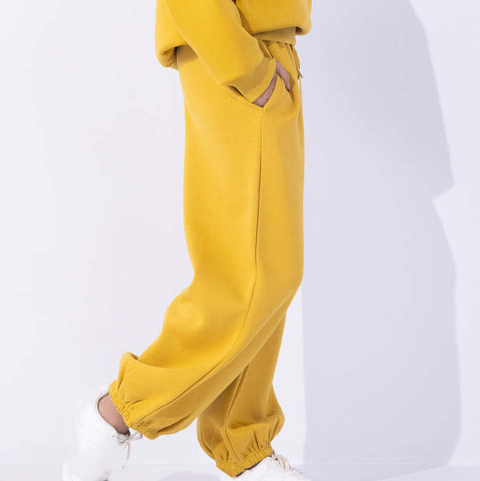 กางเกงจ็อกเกอร์ขายส่งสีเหลืองเข้มสำหรับผู้หญิง ทรงตรง ผ้าฝ้ายฟลีซ ระบายอากาศได้ดี สไตล์หลวม ทรงปกติ ใส่สบายๆ