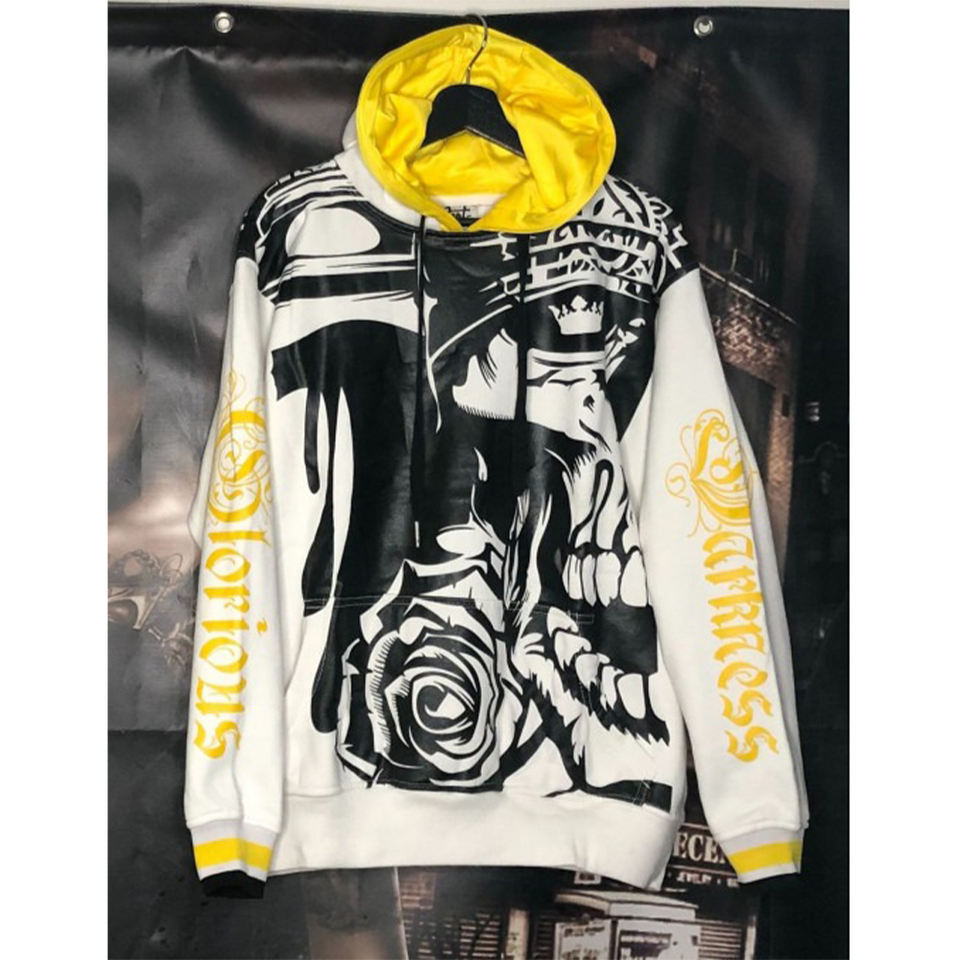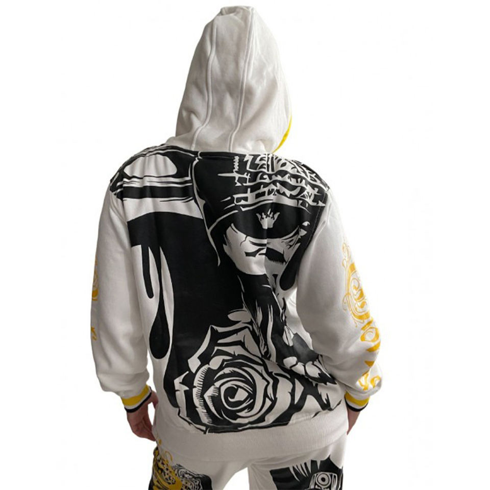 เสื้อมีฮู้ดลายกราฟฟิตีสีขาว