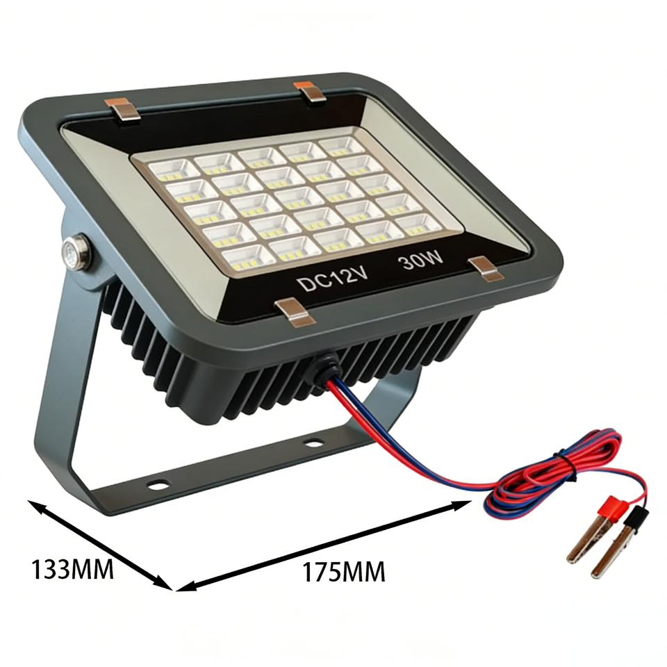 ไฟส่องสว่างแบบเหนี่ยวนำสำหรับภายนอกอาคาร กำลังไฟต่ำ 30w DC12v แบบพกพา กันน้ำ IP65 พร้อมสายทองแดง วัสดุ ABS สำหรับสวน ขายส่ง