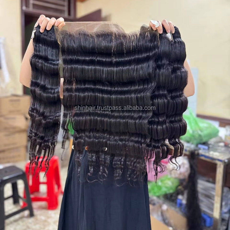 มัดผมมนุษย์แบบเป็นลอนลึกและส่วนหน้าผมดิบจากเวียดนามมีคุณภาพระดับพรีเมียม