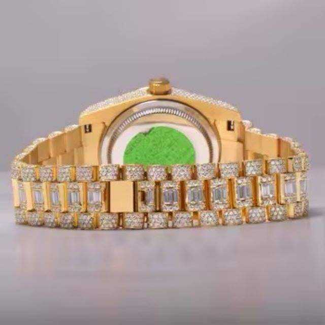 Wholesale Dealer VVS Clarity Moissanite Diamond Studded Stainless Steel Leather Band Analog Glass Automatic Watch Market Price