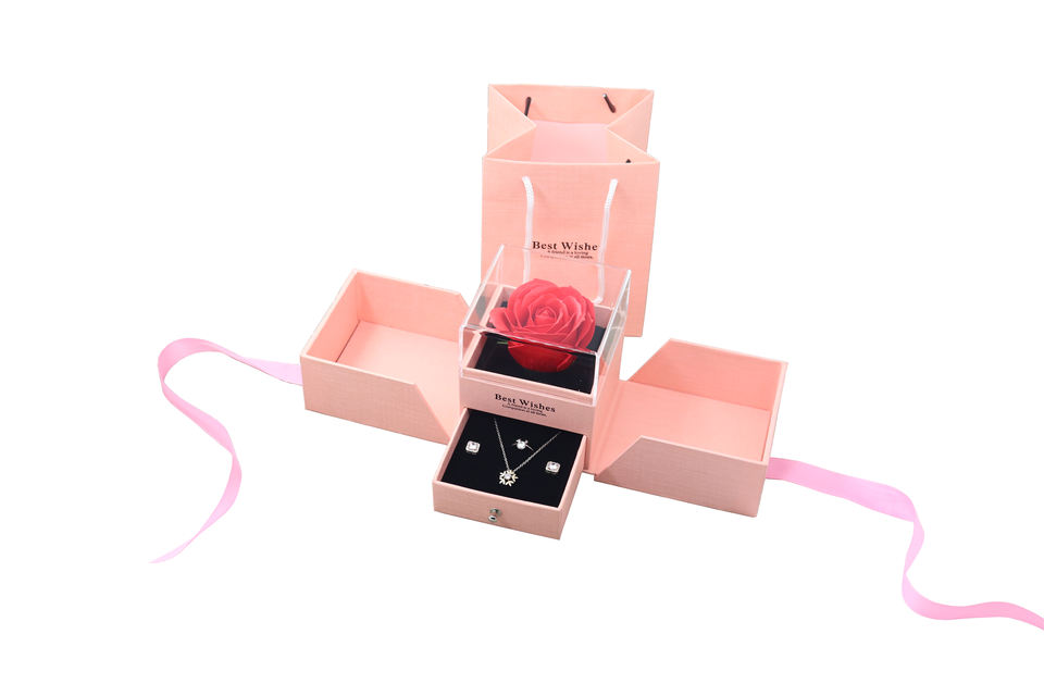 ดอกไม้ประดับวันวาเลนไทน์ดอกกุหลาบนิรันดร์พร้อมกล่องใส่เครื่องประดับ
