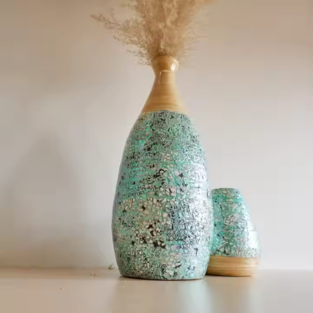 คำอธิบาย:แจกันไม้ไผ่แบบหมุนสำหรับตกแต่งบ้านมีเอกลักษณ์