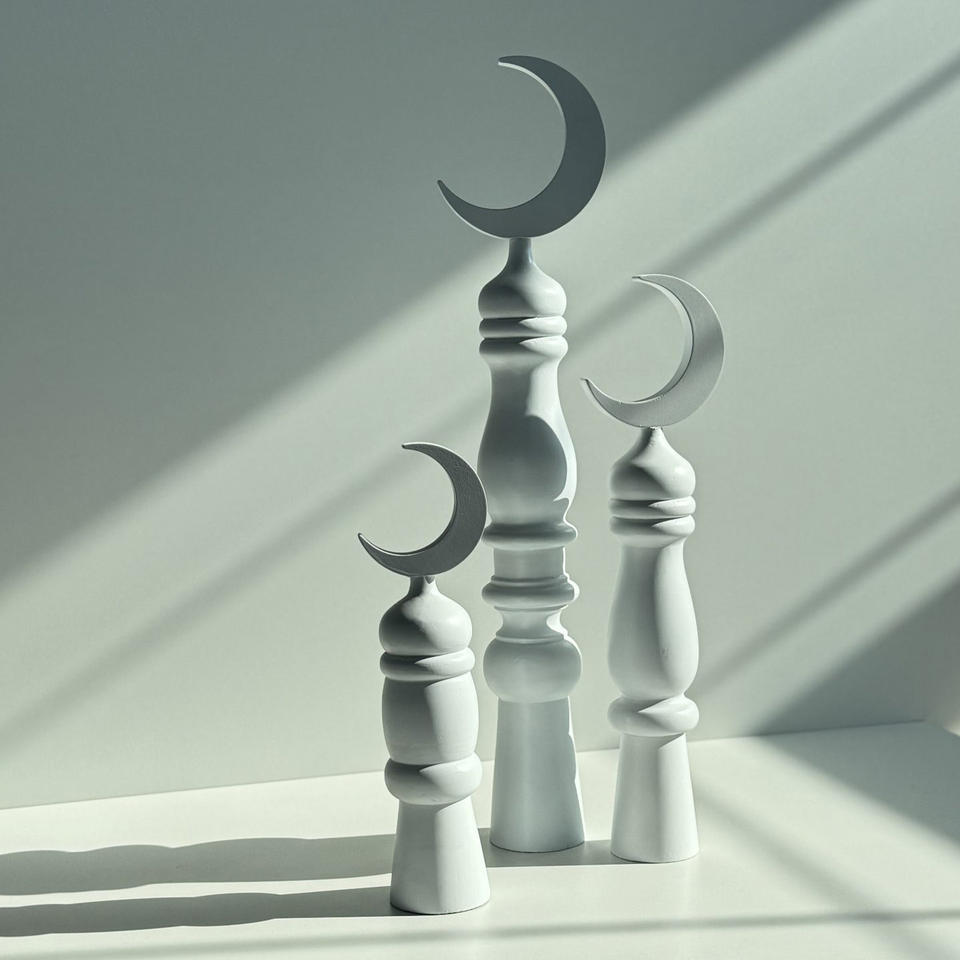 เครื่องประดับพระจันทร์เสี้ยวของตกแต่งสำหรับเดือนรอมฎอนอิสลามเครื่องประดับรูปพระจันทร์เดือนรอมฎอนที่สง่างามสำหรับตกแต่งบนโต๊ะและห้องนั่งเล่น