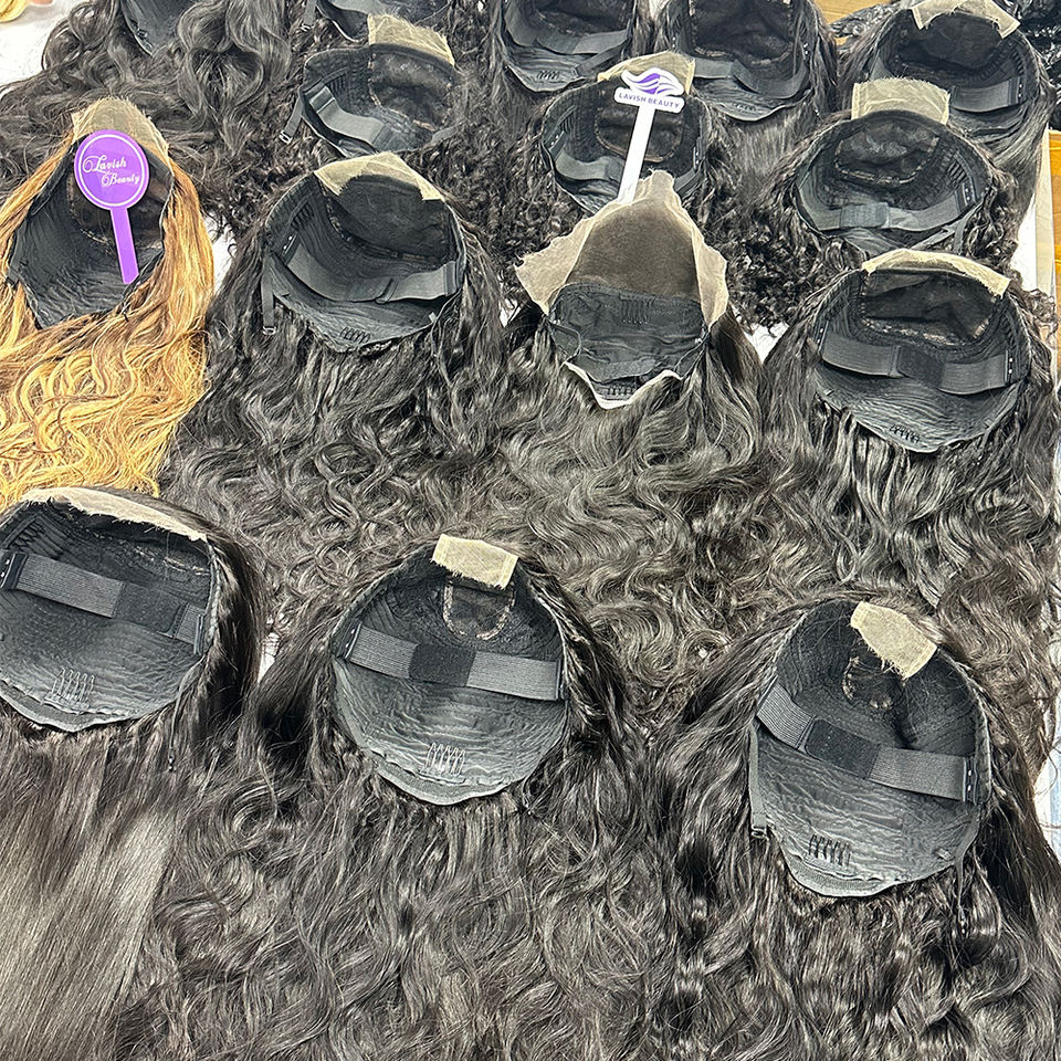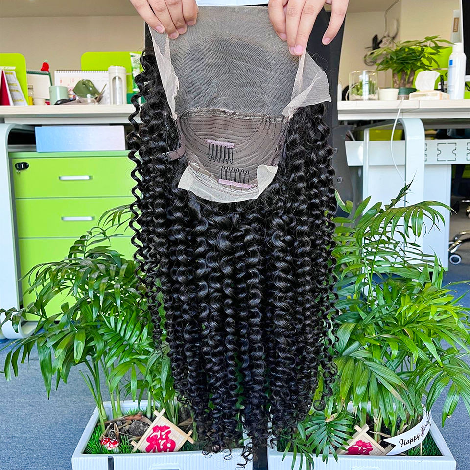 วิกผมลูกไม้ด้านหน้าแบบลอนลึกสำหรับผู้หญิงผิวดำวิกผมแท้คุณภาพสูงโปร่งใส HD