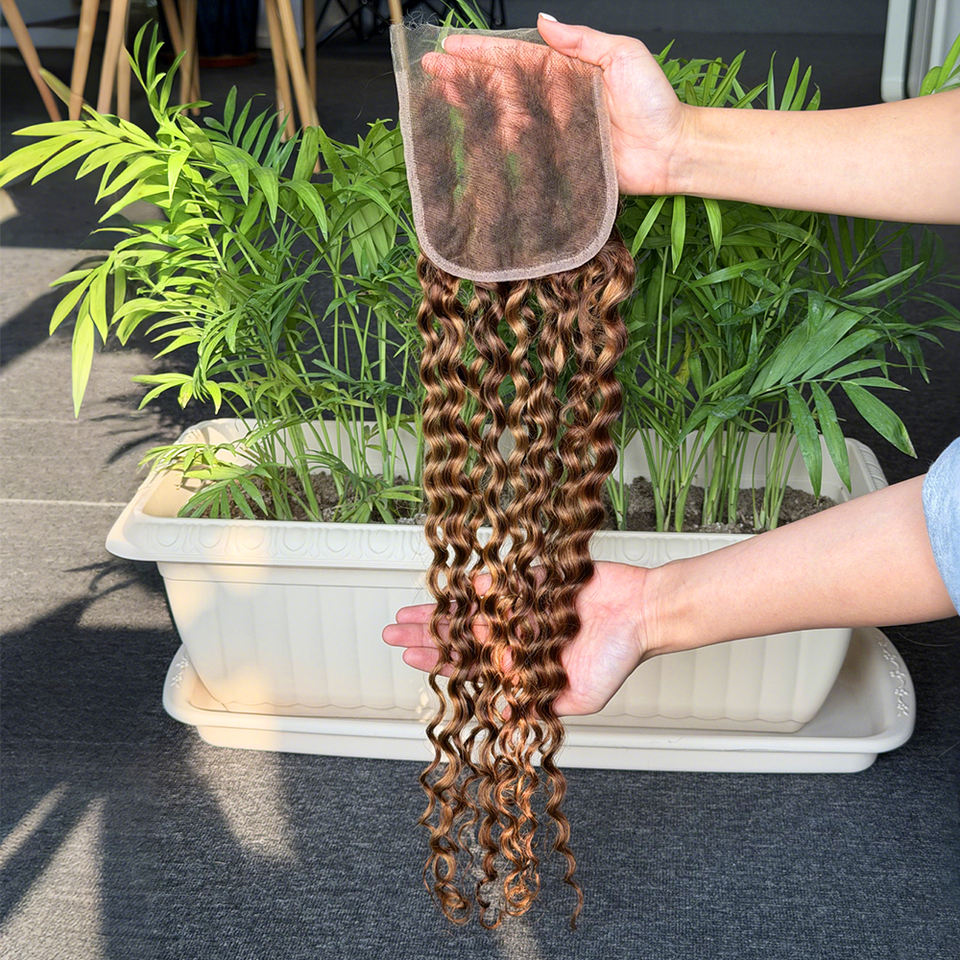 ผมมนุษย์ทำจากเปียโนแบบมีสายรัดด้านหน้าผมคลื่นลึก4x4 5x5 6 HD