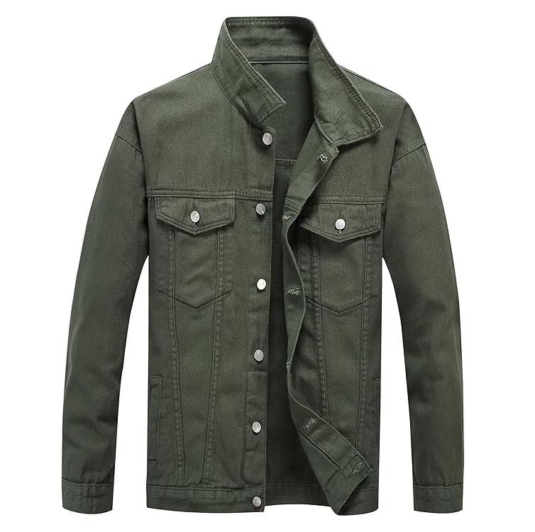 แจ็กเก็ตยีนส์สำหรับผู้ชายเสื้อโค้ทยีนส์สีเขียวแนวสตรีทเสื้อผ้ายีนส์มาใหม่