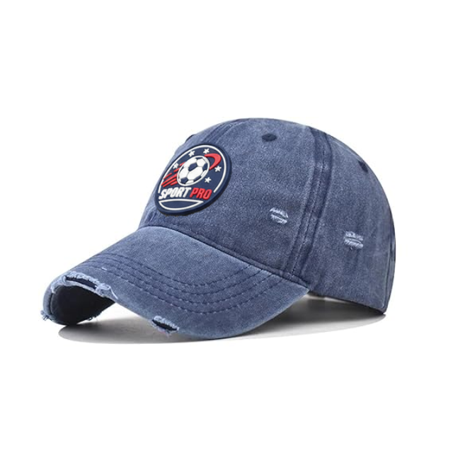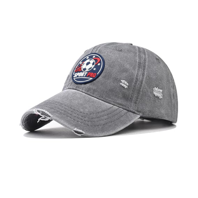 Wholesale Denim Unstructured 6 Panel Baseball Hat Curved Brim Rubber Patch Logo Washed Cotton Distressed Dad Cap For Casual Wear