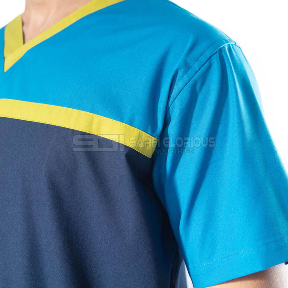 ชุดยูนิฟอร์มแพทย์แบบขายส่ง ดีไซน์สวย ผ้าสแปนเด็กซ์/โพลีเอสเตอร์ เนื้อผ้านุ่ม คอวี มีกระเป๋าหลายช่อง เหมาะสำหรับแพทย์ในช่วงฤดูร้อน