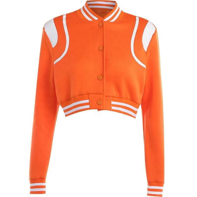 แจ็กเก็ตเบสบอลผู้หญิงแขนยาวใส่สบายเสื้อครอปตัดปะแฟชั่นดีไซน์เนอร์